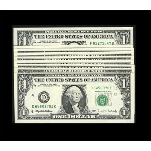 <B>Fr. 1923-D, F $1 1995 Web Federal Reserve Notes. Nine Examples Very Choice Crisp Uncirculated.</B></I><BR>This group contains three examples from the D-C block and six notes from the F-D Block with four consecutive notes. The margins are quite nice and the paper is crisp.<BR>