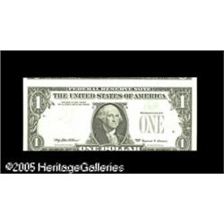 <B>Fr. 1924-A $1 1999 Federal Reserve Note. Gem Crisp Uncirculated.</B></I> A striking double error. The third printing is inverted on the reverse and the sheet was badly cut towards the top, resulting in a portion of the note above on the sheet showing, while the lower margin is significantly trimmed into the design. Lot:15378