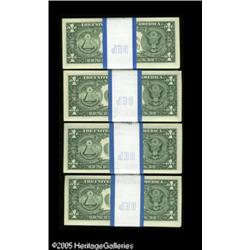 <B>Fr. 1924-B $1 1999 Federal Reserve Notes. Four Original Packs of 100. Gem Crisp Uncirculated.</B></I><BR>Suffix letters D, I, J, and F are carried by this New York quadrumvirate.<BR> 400 notes Lot:15842