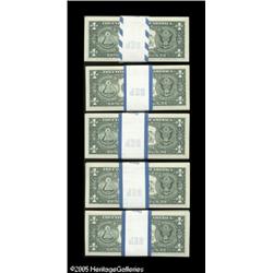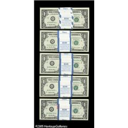 <B>Fr. 1924-B (4), B* $1 1999 Federal Reserve Notes. Five Original Packs of 100. Gem Crisp Uncirculated.</B></I><BR>A total of five different New York blocks are found on this grouping of packs.<BR> 500 notes Lot:15843