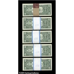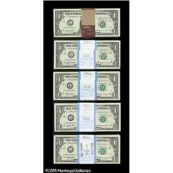 <B>Fr. 1925-K $1 1999 Federal Reserve Notes. Five Original Packs of 100. Gem Crisp Uncirculated.</B></I><BR>Each pack in this lot sports a different block.<BR> 500 notes Lot:15850