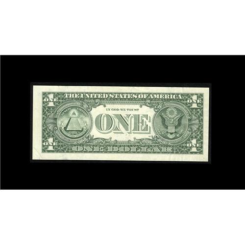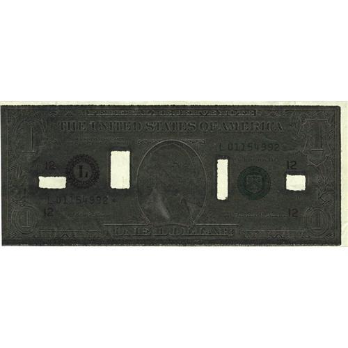 <B>Fr. 1925-L* $1 1999 Federal Reserve Note. Extremely Fine-About Uncirculated.</B></I><BR>Certainly no note such as this has ever before been seen outside the BEP. Recently a story appeared in Coin World which stated that this note was never intended to have undergone any of the normal printing processes. Per the story a Treasury official confirmed the item as a test note which is produced to make sure the face plates are completely inked before starting a run. The four blank squares are portions of the plate that require no ink as no intaglio print is located in that area of the plate. The fact that this error occurs on a replacement note certainly adds to the mystique on how this was released into circulation given the fact that stringent quality control measures are in place within the BEP. First Fort Worth gave us the "Del Monte" note, now they have given us the "California Blackout" note. We certainly cannot place an exact value on a unique piece such as this, but we feel that our estimate should fall in the area of...