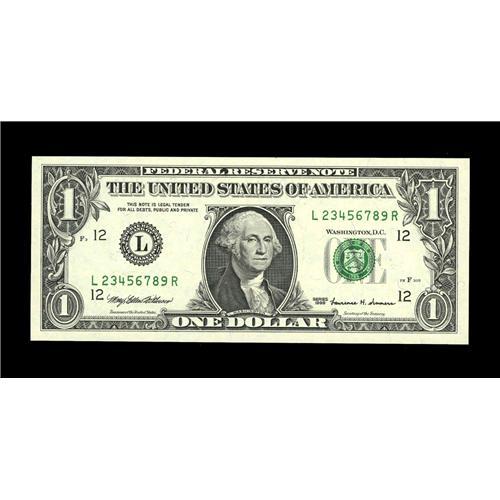 <B>Fr. 1925-L $1 1999 Federal Reserve Note. Superb Gem Crisp Uncirculated.</B></I><BR>This notes sets itself apart from the nearly 2 billion notes printed by its serial number L23456789R.<BR><I>From the Scottsdale Collection</B></I>
