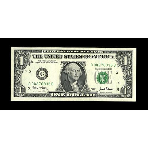 <B>Fr. 1926-C $1 2001 Federal Reserve Note. Gem Crisp Uncirculated.</B></I><BR>This multiple printing of the face on the back has the printing at an angle and inverted. This is one of the toughest types of errors.<BR><BR><b>Shipping:</b> Coin/Currency (<a target="_blank" href="http://www.heritageauctions.com/common/shipping.php">view shipping information</a>)