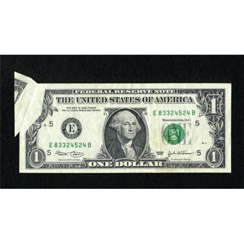 <B>Fr. 1928-E $1 2003 Federal Reserve Note. Extremely Fine.</B></I><BR> A nice "butterfly" is found in the upper left corner of this lightly circulated FRN.<BR><BR><b>Shipping:</b> Coins & Currency (<a target="_blank" href="http://www.heritageauctions.com/common/shipping.php">view shipping information</a>)