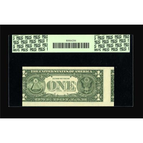 <B>Fr. 1930-F $1 2003A Federal Reserve Note. PCGS Gem New 65PPQ</B></I> This dramatic misalignment error affects both sides of the note and a sizable portion of the adjacent note is visible at left, too. The third printing is also shifted to the left.<BR><BR><b>Shipping:</b> Coins & Currency (<a target="_blank" href="http://www.heritageauctions.com/common/shipping.php">view shipping information</a>)