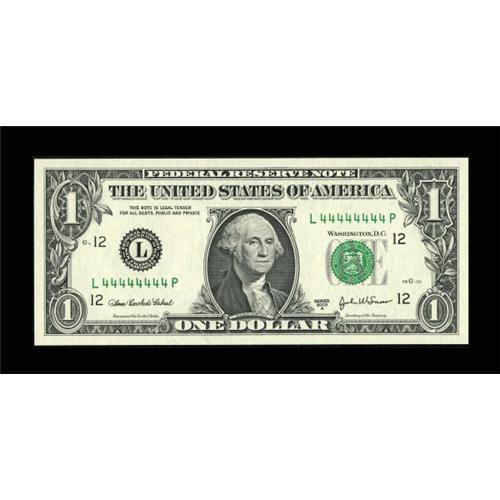 <B>Fr. 1931-L $1 2003A Federal Reserve Note. Solid Serial Number. Gem Crisp Uncirculated.</B></I><BR> Solid serial number L44444444P is seen on this pack fresh example that is oh so close to Superb. The back centering keeps the note in the high gem range.<BR><BR><b>Shipping:</b> Coins & Currency (<a target="_blank" href="http://www.heritageauctions.com/common/shipping.php">view shipping information</a>)