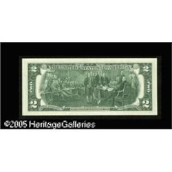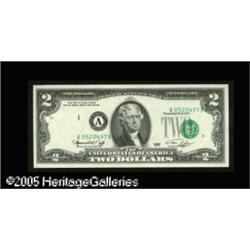 <B>Fr. 1935-A $2 1976 Federal Reserve Note. Very Choice New.</B></I><BR> The third printing is off to the right with the suffix letter of the serial number wholly in the portrait area. As with most error categories, deuces are the toughest to locate of the lower denominations. Lot:15241