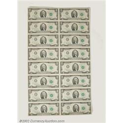 Fr. 1935-A* $2 1976 Federal Reserve Notes. Uncut Sheet of 16. Choice Crisp Uncirculated. Important n