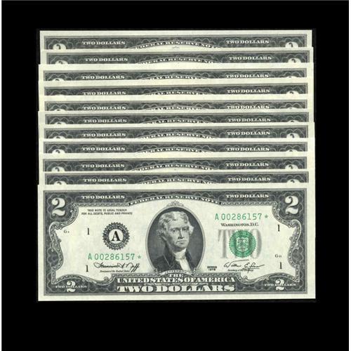 <B>Fr. 1935-A*-L* $2 1976 Federal Reserve Notes. Complete District Set. Choice Crisp Uncirculated or Better.</B></I><BR>Many of the notes in this set are Gems.