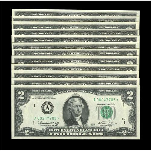 <B>Fr. 1935-A*-L* $2 1976 Federal Reserve Notes. Complete District Set. Choice Crisp Uncirculated or Better.</B></I><BR>Here is a chance to acquire this popular Star set in one big swoop. This set does include the hard-to-find Minneapolis and KC Stars.