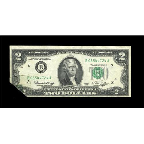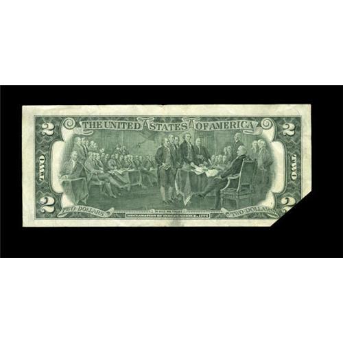<B>Fr. 1935-B $2 1976 Federal Reserve Note. Very Fine+.</B></I><BR> This interesting foldover has affected all three printings on this Deuce. As such it is quite desirable and scarce. The paper is quite crisp and bright with excellent embossing present. A wonderful error that is sure to please.<BR><BR><b>Shipping:</b> Coins & Currency (<a target="_blank" href="http://www.heritageauctions.com/common/shipping.php">view shipping information</a>)