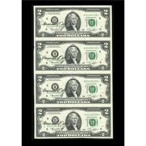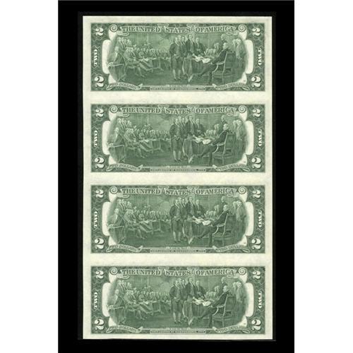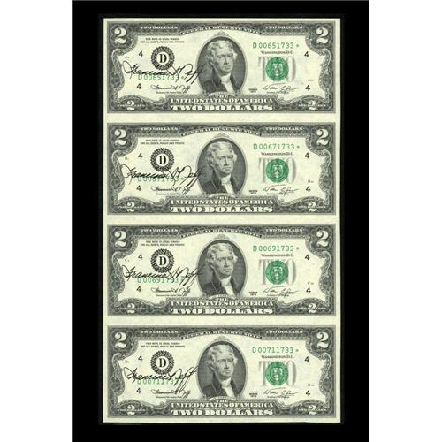 <B>Courtesy Autographed Fr. 1935-D*, H* $2 1976 Federal Reserve Notes. Uncut Sheets of Four. Choice Crisp Uncirculated.</B></I><BR>Francine I. Neff autographed each of the notes above her engraved signature on these sheets.