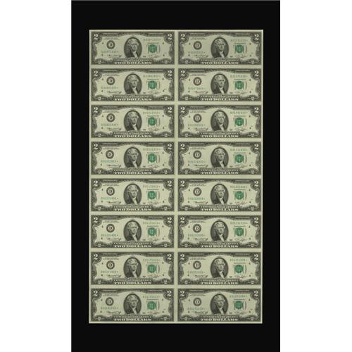 <B>Fr. 1935-D* $2 1976 Federal Reserve Notes. Uncut Sheet of Sixteen. Extremely Fine-About Uncirculated.</B></I><BR>Two folds between the notes are found on this sheet.