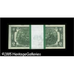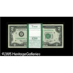 <B>Fr. 1935-F $2 1976 Federal Reserve Notes. Original Pack of 100. Gem Crisp Uncirculated.</B></I><BR>Bicentennial Two's sat in bank vaults until the official release date of April 13, 1976.<BR> 100 notes Lot:15858