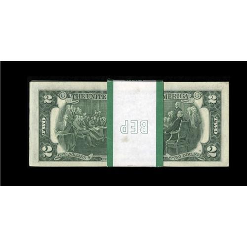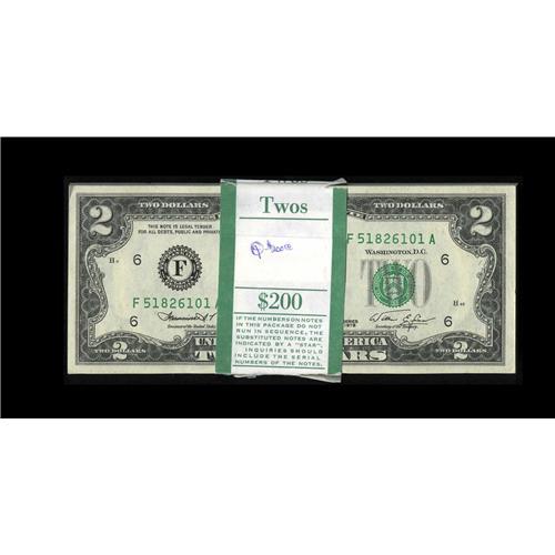 <B>Fr. 1935-F $2 1976 Federal Reserve Notes. Original Pack of 100 Consecutive Notes Choice Crisp Uncirculated.</B></I><BR>This is a nice fresh pack put away long ago.