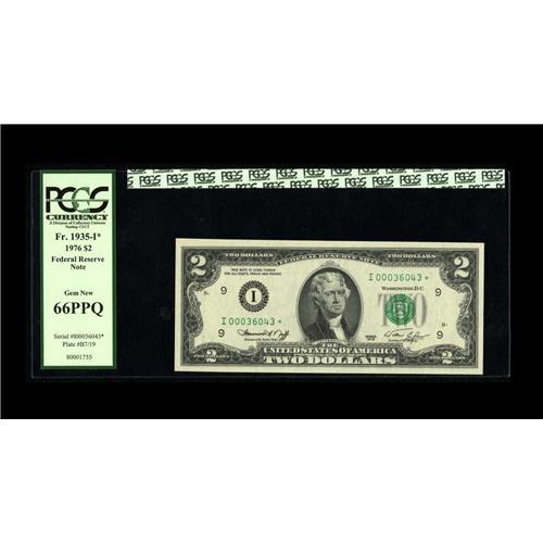<B>Fr. 1935-I* $2 1976 Federal Reserve Note. PCGS Gem New 66PPQ.</B></I><BR>The Minneapolis Star is the key to this series and always results in vigorous bidding whenever offered. We expect this premium certified example will sell in the range of...<BR><BR><b>Shipping:</b> Coin/Currency (<a target="_blank" href="http://www.heritageauctions.com/common/shipping.php">view shipping information</a>)