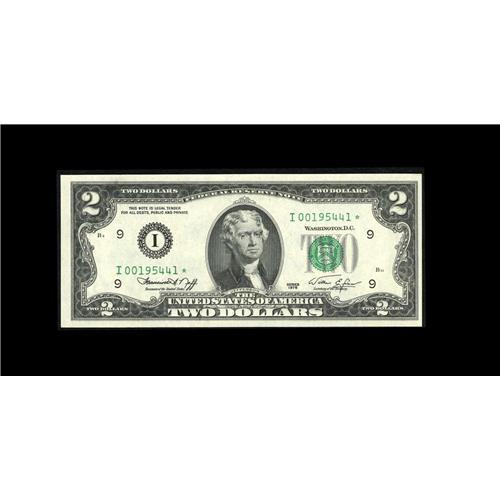 <B>Fr. 1935-I* $2 1976 Federal Reserve Note. Very Choice Crisp Uncirculated.</B></I><BR>Were it not for a tight right margin, this piece would be fully Gem or Superb. This is the key to the 1976 Star Deuces.