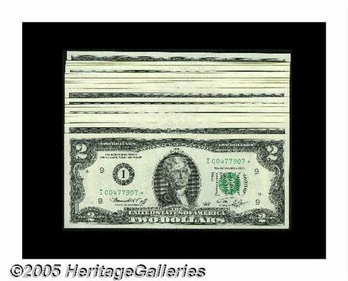 <B>Fr. 1935-I* $2 1976 Federal Reserve Notes. Twenty-four Examples. Gem Crisp Uncirculated.</B></I><BR>Here is an unbelievable run of two dozen immaculate examples of the key star for the Bicentennial Deuce issue.<BR>