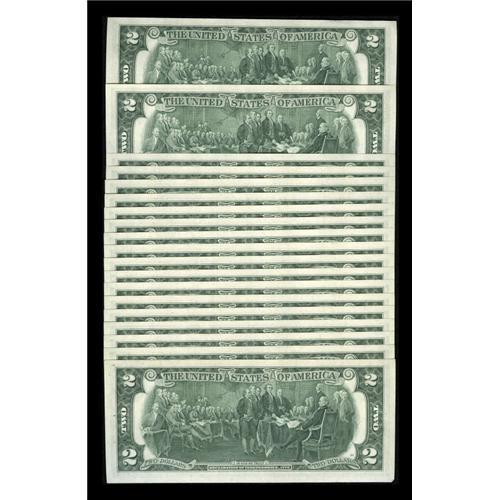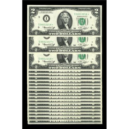 <B>Fr. 1935-I* $2 1976 Federal Reserve Notes. Nineteen Examples. Gem Crisp Uncirculated</B></I>.<BR> A few consecutive runs are noticed in this lot which contains the key to the series. All of these notes are nicely margined with deep inks. A couple exhibit minor dinged corners. <BR><BR><b>Shipping:</b> Coins & Currency (<a target="_blank" href="http://www.heritageauctions.com/common/shipping.php">view shipping information</a>)