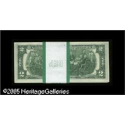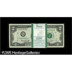 <B>Fr. 1935-K $2 1976 Federal Reserve Notes. Original Pack of 100. Choice Crisp Uncirculated.</B></I><BR>The first dozen notes show a corner bend in the upper left-hand corner, while the BEP band for this pack has been taped.<BR> 100 notes Lot:15862