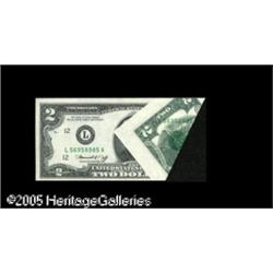 <B>Fr. 1935-L $2 1976 Federal Reserve Note. Gem New.</B></I><BR>The folding error caused the right side of the third print to wind up on the back. A neat example of a type of error which is not often seen on deuces. When last auctioned, this error realized over $1,800. Lot:15279