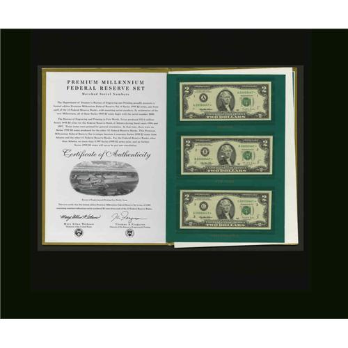 Fr. 1936-A* $2 1995 Federal Reserve Note. Choice Crisp Premium Millennium Federal Reserve $2 Set Fr.