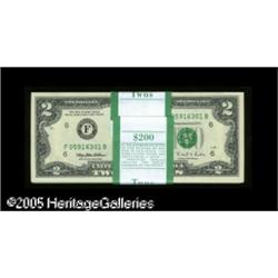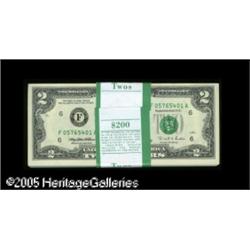 <B>Fr. 1936-F $2 1995 Federal Reserve Notes. Two Original Packs of 100. Gem Crisp Uncirculated.</B></I><BR>This lot contains one pack from both the F-A and F-B blocks. These were the only regular blocks released for general circulation.</B></I> 200 notes Lot:15864