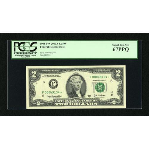 Fr. 1938-F* $2 2003A Federal Reserve Note. PCGS