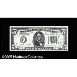 <B>Fr. 1950-F* $5 1928 Federal Reserve Note. Crisp Uncirculated.</B></I><BR>There is a small stain and a well concealed repair on the left margin. Lot:15871