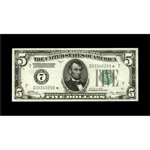 <B>Fr. 1950-G* $5 1928 Federal Reserve Note. Choice Crisp Uncirculated.</B></I><BR>The margins are broad on this nicely centered example.This is just one of many high-grade Chicago Fed's that Bill purchased over the past 20 years.<BR><I>From The Bill and Kathy Stella Currency Collection</B></I><BR><BR><b>Shipping:</b> Coin/Currency (<a target="_blank" href="http://www.heritageauctions.com/common/shipping.php">view shipping information</a>)