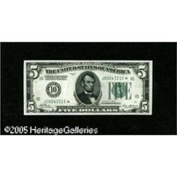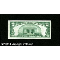 <B>Fr. 1950-J* $5 1928 Federal Reserve Note. Crisp Uncirculated.</B></I><BR>A tough star which is fully choice in all respects save for an as made blob of green ink on the reverse. Lot:15876