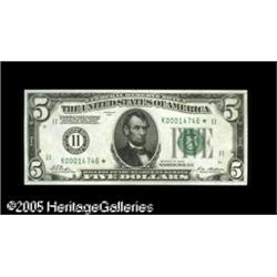 <B>Fr. 1950-K* $5 1928 Federal Reserve Note. Choice Crisp Uncirculated.</B></I><BR>A decently centered star example from this well collected district. Lot:15878