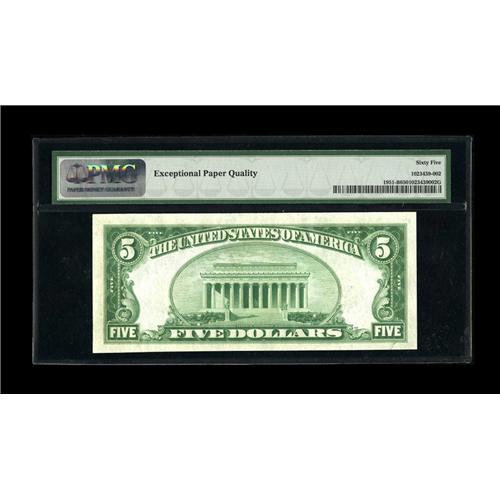 Fr. 1951-B $5 1928A Federal Reserve Note. PMG Gem 65