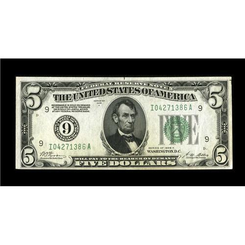 <B>Fr. 1951-I $5 1928A Federal Reserve Note. About Uncirculated.</B></I> A nice lightly circulated example of the key district from this series. Only 652,800 examples were originally printed from the Minneapolis district, compared to more than 43 million for the New York district and more than 37 million for the Chicago district. Survivors are quite scarce, and the time-lapse between offerings can be as much as every few years. This note should excite many small size specialists, and we expect the spirited bidding to end somewhere in the range of. . .<BR><BR><b>Shipping:</b> Coin/Currency (<a target="_blank" href="http://www.heritageauctions.com/common/shipping.php">view shipping information</a>)
