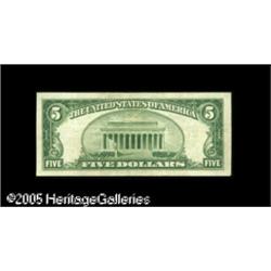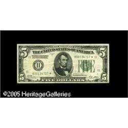 <B>Fr. 1951-K* $5 1928A Federal Reserve Note. Very Fine.</B></I><BR>A just plain rare star which is the sole note listed by serial number in the Oakes reference for this district. The only detraction here is one tiny pinhole. This piece has the potential to surprise, as we've seen no other 1928A $5 stars from here. Lot:15887