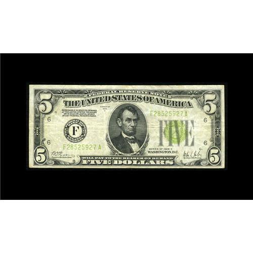 <B>Fr. 1953-F $5 1928C Federal Reserve Note. Fine-Very Fine.</B></I><BR>A nice evenly circulated example of this scarce note which is a lot closer to the higher grade than the lower.