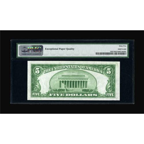 Fr. 1955-I $5 1934 Federal Reserve Note. PMG Gem