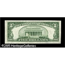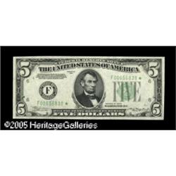 <B>Fr. 1956-F* $5 1934 Mule Federal Reserve Note. Crisp Uncirculated.</B></I><BR>The embossing on this challenging Mule is not quite up to our standards for a higher grade.<BR><I>Acquired from Dean Oakes.</B></I> Lot:15912