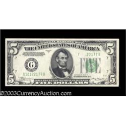 <TABLE cellSpacing=0 cellPadding=0 width="100%" bgColor=#000000 border=0><TBODY> <TR><TD width="100%"><TABLE cellSpacing=1 cellPadding=3 width="100%" border=0><TBODY><TR><TD width="100%" bgColor=#79735c><FONT face=arial color=#ffffff size=3><B>Description</B> </FONT></TD></TR><TR><TD width="100%" bgColor=#ffffff><FONT face=arial size=2><B>Fr. 1957-G $5 1934A Federal Reserve Notes. Choice Crisp Uncirculated.</B></I> A consecutive pair, each with a significant obstruction error which covered several digits in their upper right serial numbers. (350-550 ) </FONT></TD></TR></TBODY></TABLE></TD></TR></TBODY></TABLE><BR><TABLE cellSpacing=0 cellPadding=0 width="100%" bgColor=#000000 border=0><TBODY><TR> Important notice: Heritage usually auctions material at the rate of 200-250 lots per hour. On some occasions eBay Live bid software or the Internet may not be able to keep up with the pace of the auction. We recommend placing a realistic absentee bid now as insurance to avoid disappointment. Occasionally the auctioneer may eliminate or reject an eBay Live bid, and the auctioneer may also reopen a lot after the close of the eBay live bidding (usually because we missed an audience bid), and may reject your bid even if it shows you as the winning bidder. By bidding via eBay Live, you agree that Heritage may award the lot to another bidder at its sole discretion under the circumstances described above or any other reasonable circumstances. Also please note that all Heritage lots purchased through eBay Live carry a 20% Buyer's Premium. Please make sure you read the Terms and Conditions before you bid.</TR></TBODY></TABLE>