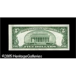 <B>Fr. 1959-C* $5 1934C Federal Reserve Note. Choice Crisp Uncirculated.</B></I><BR>A note we'd have classified without reservation as a Gem were the right to left centering a bit better. Lot:15932