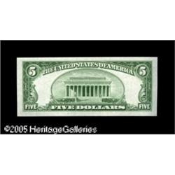 <B>Fr. 1959-D* $5 1934C Federal Reserve Note. Choice Crisp Uncirculated.</B></I><BR>Gem but for two tiny pinholes in the right margin.<BR><I>Acquired from Harry Jones.</B></I> Lot:15933