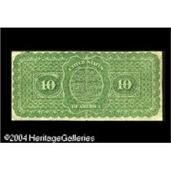 Fr. 196 $10 1864 Interest Bearing Note Choice Very Fine <B>Fr. 196 $10 1864 Interest Bearing Note Choice Very Fine.</B></I> A gorgeous piece with the bright, bold colors that are simply never seen on this type. This is the second finest in collectors' hands. There is an Extremely Fine known, and that resides in the ANA Museum. It is entirely possible that the ANA Museum piece, as well as most of the reported 196's, are likely misattributed. Early collectors made no distinction between this very rare Fr. 196 and the far-more-common Fr. 196a printed by the National Bank Note Company. It's quite possible that as few as five Fr. 196's exist. This piece is totally problem-free save for a few small pinholes. It also has excellent margins and ideal color. An extremely rare and underrated note that Malcolm Trask acquired from Robert Friedberg in the 1950's. Prior to that, it had been in a New Netherlands sale, and before that, it was owned by F.C.C. Boyd. It's one of the few Trask notes that has been recorded in any known census.<BR><I>From the collection of Malcolm A. Trask.</B></I> <BR><BR><B>Important notice:</B> Heritage usually auctions material at the rate of 200-250 lots per hour. On some occasions eBay Live bid software or the Internet may not be able to keep up with the pace of the auction. We recommend placing a realistic absentee bid now as insurance to avoid disappointment. Occasionally the auctioneer may eliminate or reject an eBay Live bid, and the auctioneer may also reopen a lot after the close of the eBay live bidding (usually because we missed an audience bid), and may reject your bid even if it shows you as the winning bidder. By bidding via eBay Live, you agree that Heritage may award the lot to another bidder at its sole discretion under the circumstances described above or any other reasonable circumstances. Since eBay bids are not shown to us until we open the lot on the floor, we treat those bids just like floor bids. In most cases the floor responds before the eBay bid is presented to us, due to Internet lag time, so for consistency we have made it a policy that floor bids are always considered first over tie eBay live bids. Also please note that all Heritage lots purchased through eBay Live carry a 20% Buyer's Premium. Please make sure you read the Terms and Conditions before you bid. This lot is being auctioned in conjunction with a live floor auction by Heritage Galleries & Auctioneers. All final auction and invoice information will be supplied by Heritage Galleries & Auctioneers, and all other information should be considered preliminary. Lot:17053