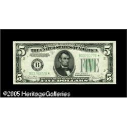 <B>Fr. 1960-B* $5 1934D Federal Reserve Note. Gem Crisp Uncirculated.</B></I><BR>Another pack fresh Star, enhanced by well balanced centering.<BR><I>Acquired from Harry Jones.</B></I> Lot:15937