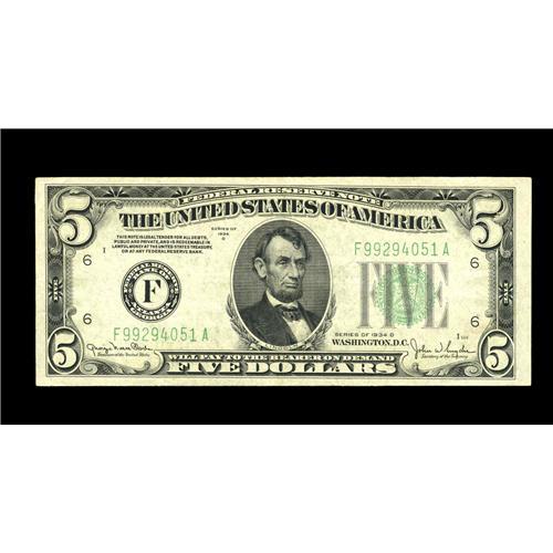 Fr. 1960-F $5 1934D Federal Reserve Note. Choice About Fr. 1960-F $5 1934D Federal Reserve Note. Cho