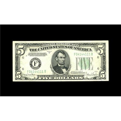 Fr. 1960-F $5 1934D Federal Reserve Note. Extremely Fin Fr. 1960-F $5 1934D Federal Reserve Note. Ex
