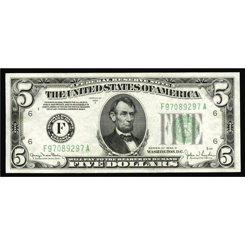 Fr. 1960-F $5 1934D Federal Reserve Note. Gem Crisp Unc Fr. 1960-F $5 1934D Federal Reserve Note. Ge