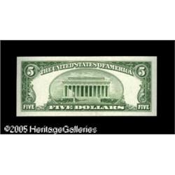 <B>Fr. 1960-H* $5 1934D Federal Reserve Note. Choice Crisp Uncirculated.</B></I><BR>Gem centering and color, but the note is a bit flat, disqualifying it from the higher grade.<BR><I>Acquired from Harry Jones.</B></I> Lot:15941