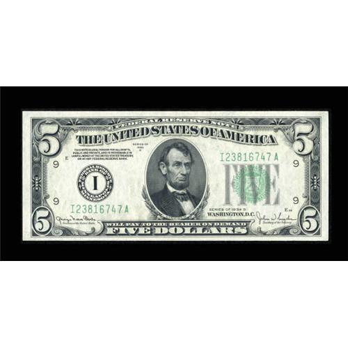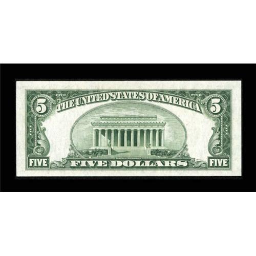 <B>Fr. 1960-I $5 1934D Federal Reserve Note. Gem Crisp Uncirculated.</B></I><BR> A well centered and totally original example of this very scarce note. <BR><I>From The Thomas M. Flynn Collection</B></I><BR><BR><b>Shipping:</b> Coins & Currency (<a target="_blank" href="http://www.heritageauctions.com/common/shipping.php">view shipping information</a>)