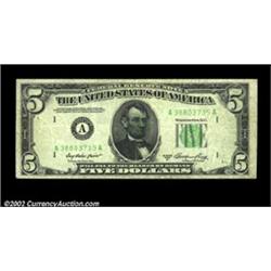 Fr. 1962-A $5 1950A Federal Reserve Note. Very Fine.The reverse printing is shifted high, with a quarter-inch or so of the design showing from the note below at the bottom. Important notice: We expect to be auctioning lots at the rate of 200-250 per hour. Sometimes eBay Premier live bid software cannot keep up with that pace, so we strongly recommend that you place a realistic proxy bid now as insurance to avoid disappointment. Also please note that all Heritage/CAA lots purchased through eBay Premier carry a 20% Buyer's Premium. Please make sure you read the Terms and Conditions.